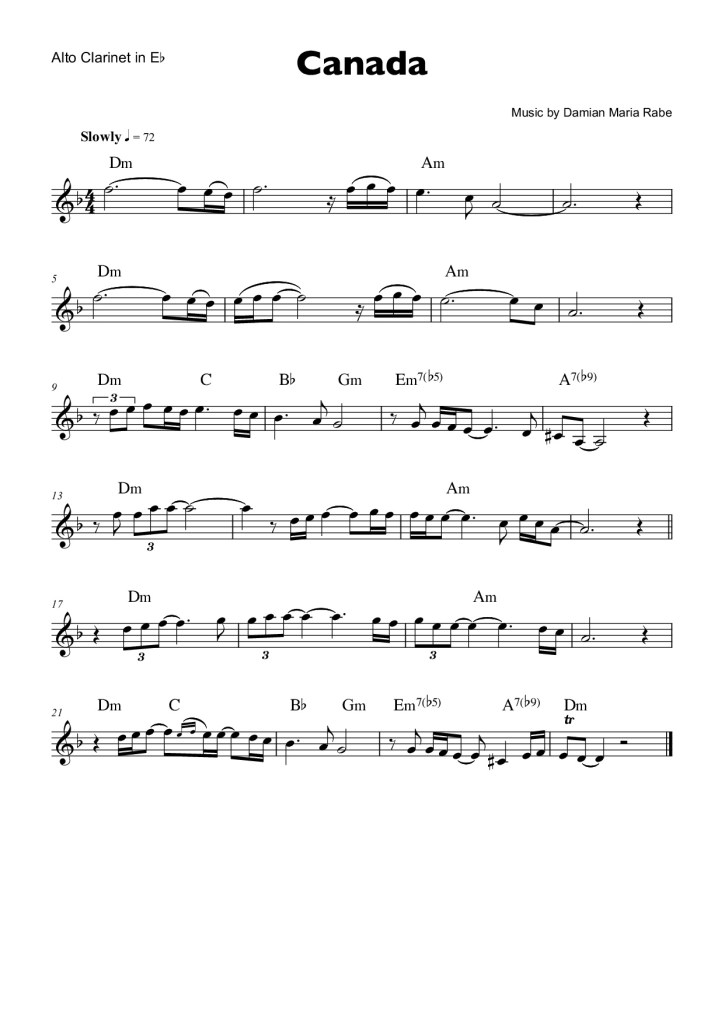 Dieses kleine Klarinettenkonzert mit einer Länge von ca. 40 Minuten hat der Hamburger Komponist Damian Maria Rabe der Amerikanischen Klarinettistin Pamela Coates gewidmet. Die neun Stücke sind auch eine Beschreibung des Lebensweges dieser vielseitigen Solistin – Ihr (musikalischer) Weg von ihrer Heimat Chicago mit vielen Umzügen durch die Südstaaten, über Stuttgart und dann bis zum heutigen Wirken in Hamburg