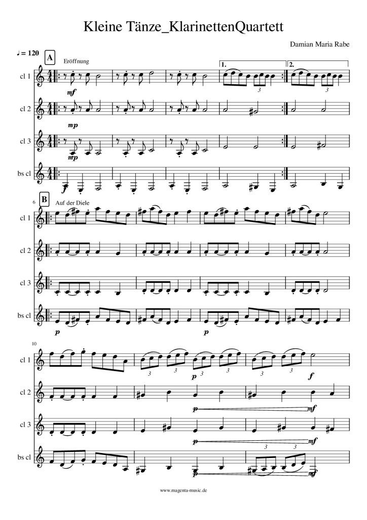 Kompositionen von Damian Maria Rabe. Geschrieben für Klarintette, zwei Violinen und Cello