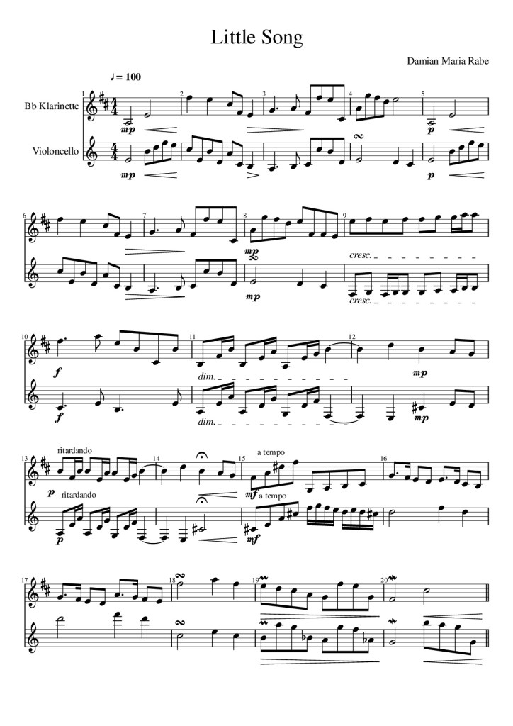 Alle Kompositionen von Damian Maria Rabe zum Tema (klassische) Klarinette mit Cello